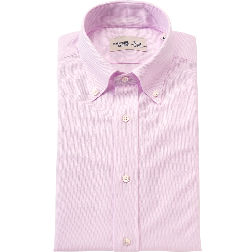 高密度ニット生地はドレスシャツと見間違うほどの美しさ。