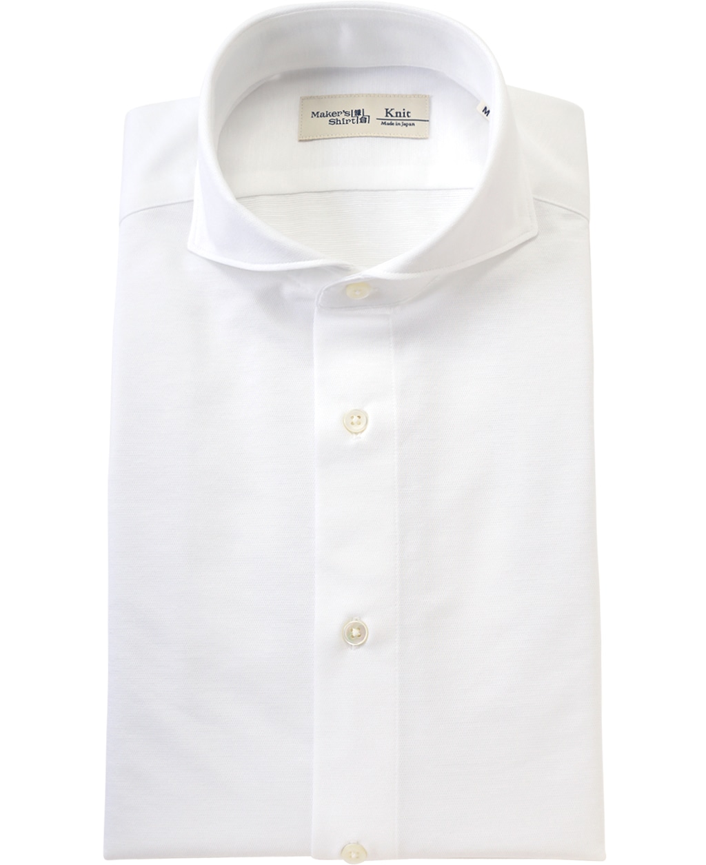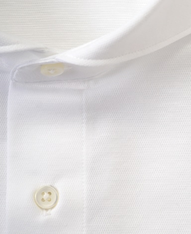 高密度ニット生地はドレスシャツと見間違うほどの美しさ。