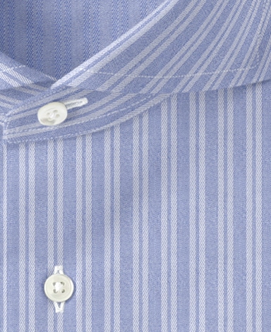 通常針目は3cmに18針以上で高級とされていますが、私たちのシャツは21針で縫い上げられています。また、耐久性に優れた「巻き伏せ本縫い」でシャツを仕立てています。