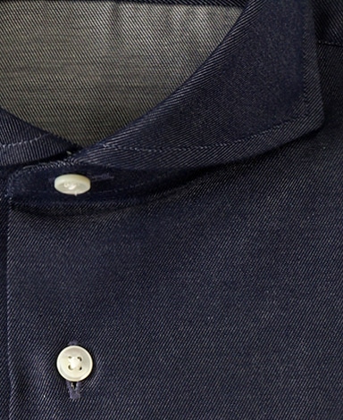 通常針目は3cmに18針以上で高級とされていますが、私たちのシャツは21針で縫い上げられています。また、耐久性に優れた「巻き伏せ本縫い」でシャツを仕立てています。