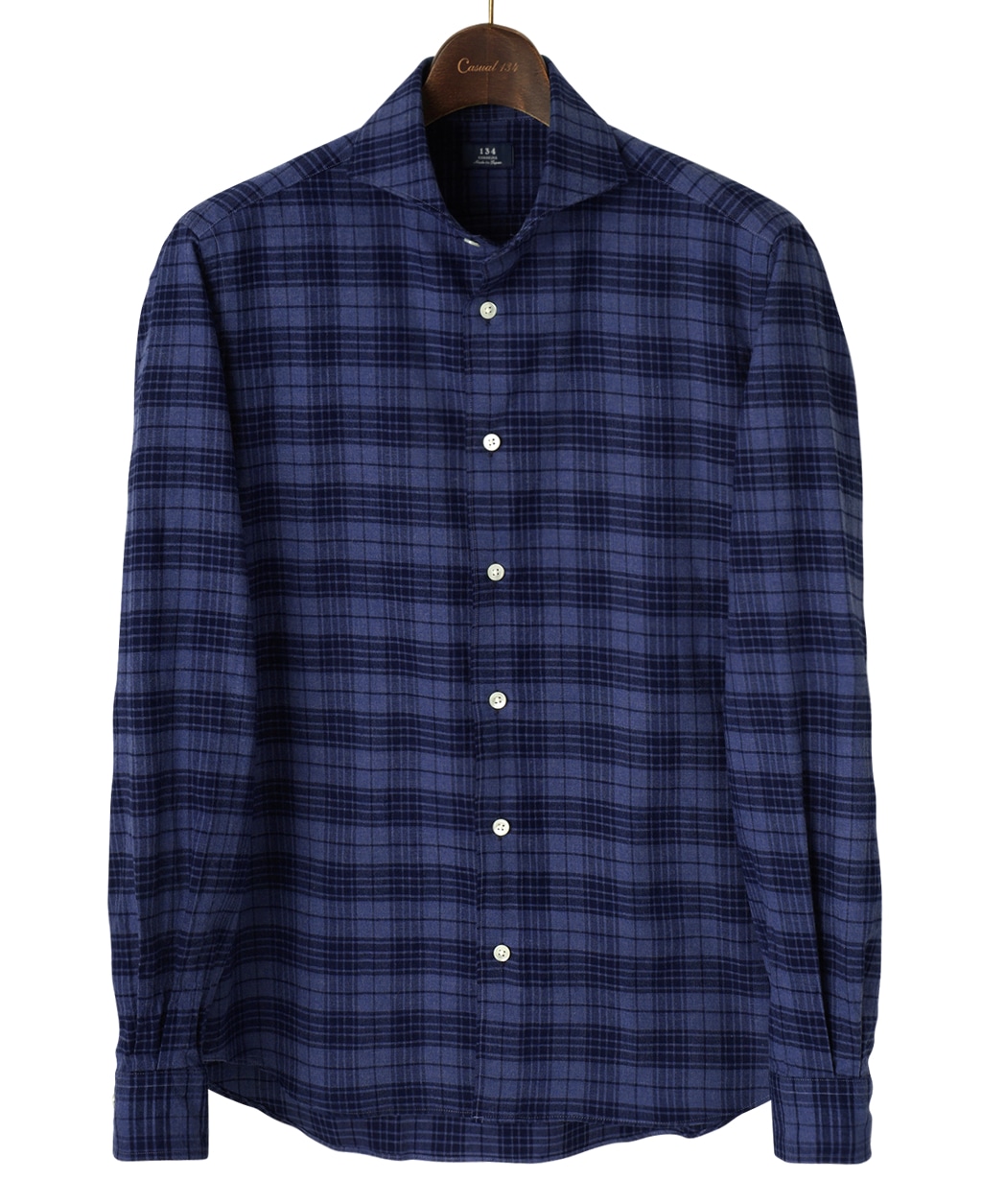カジュアル134シャツより新しいシルエットが誕生。ウエストをシェイプしバックスタイルを背ダーツ仕様にすることですっきりとしたデザインになりました。