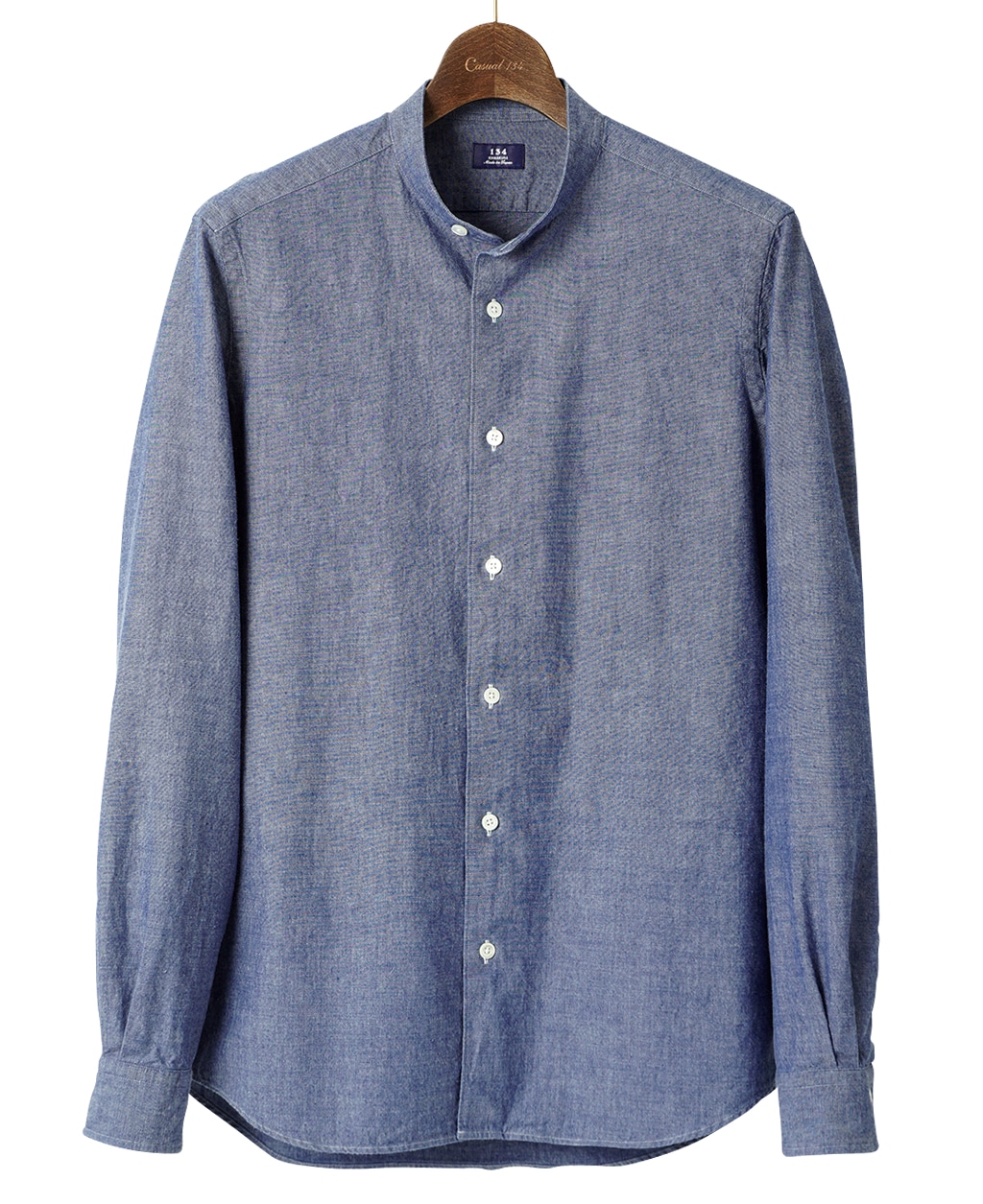 カジュアル134シャツより新しいシルエットが誕生。ウエストをシェイプしバックスタイルを背ダーツ仕様にすることですっきりとしたデザインになりました。