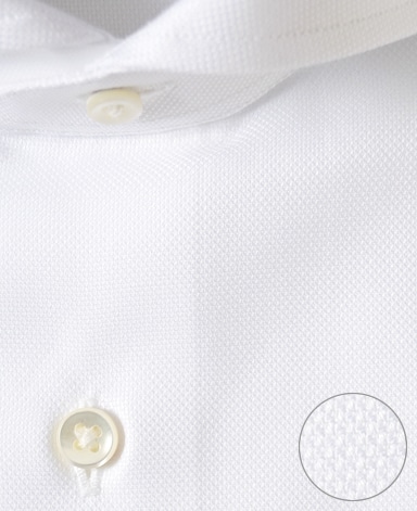 ■襟の表裏のパターンに差をつけ、コンパクトかつ構築的な襟を実現。品の良いドレスシャツの証である、首に巻きつくような内巻きフォルムは、匠によるいせ込み技術の成果です。