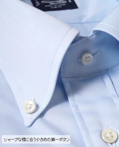 ■第一ボタンには、シャープな襟に合う小さめの9mmボタンを使用。