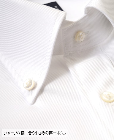 ■第一ボタンには、シャープな襟に合う小さめの9mmボタンを使用。
