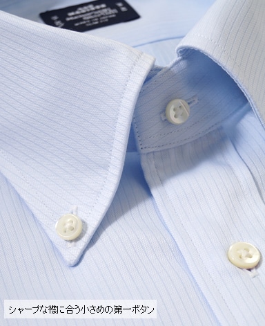 ■第一ボタンには、シャープな襟に合う小さめの9mmボタンを使用。