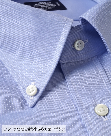 ■第一ボタンには、シャープな襟に合う小さめの9mmボタンを使用。