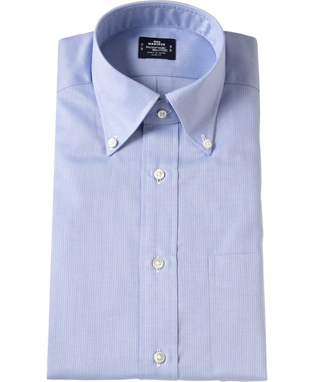 通常針目は3cmに18針以上で高級とされていますが、私たちのシャツは21針で縫い上げられています。また、耐久性に優れた「巻き伏せ本縫い」でシャツを仕立てています。