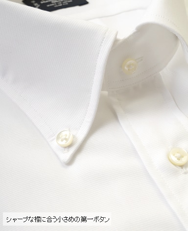 ■第一ボタンには、シャープな襟に合う小さめの9mmボタンを使用。