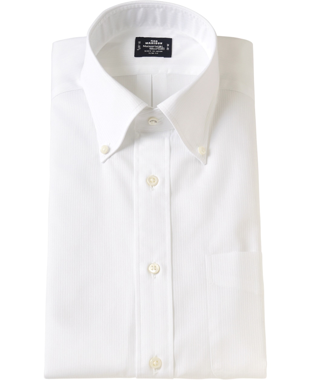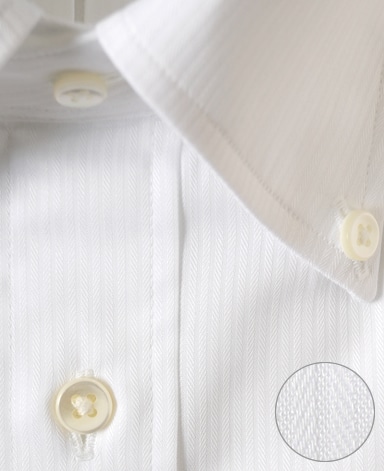 通常針目は3cmに18針以上で高級とされていますが、私たちのシャツは21針で縫い上げられています。また、耐久性に優れた「巻き伏せ本縫い」でシャツを仕立てています。