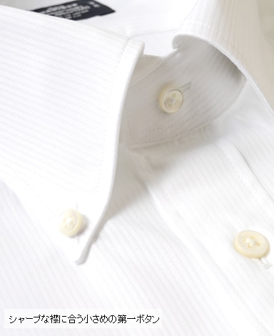■第一ボタンには、シャープな襟に合う小さめの9mmボタンを使用。