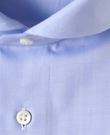 通常針目は3cmに18針以上で高級とされていますが、私たちのシャツは21針で縫い上げられています。また、耐久性に優れた「巻き伏せ本縫い」でシャツを仕立てています。