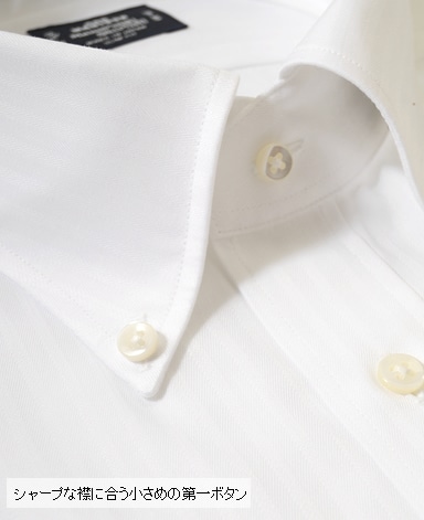 ■第一ボタンには、シャープな襟に合う小さめの9mmボタンを使用。