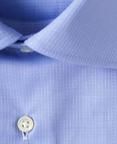 ■襟の表裏のパターンに差をつけ、コンパクトかつ構築的な襟を実現。品の良いドレスシャツの証である、首に巻きつくような内巻きフォルムは、匠によるいせ込み技術の成果です。