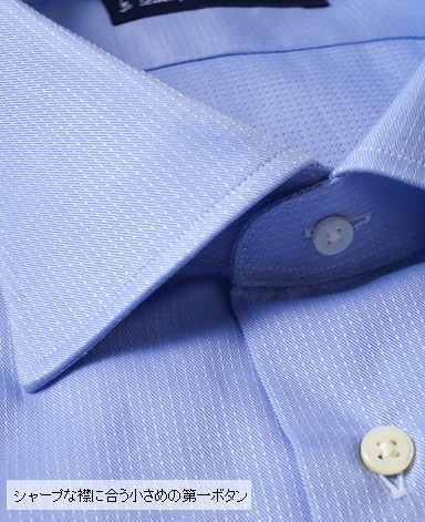 ■第一ボタンには、シャープな襟に合う小さめの9mmボタンを使用。
