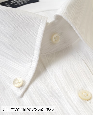 ■第一ボタンには、シャープな襟に合う小さめの9mmボタンを使用。