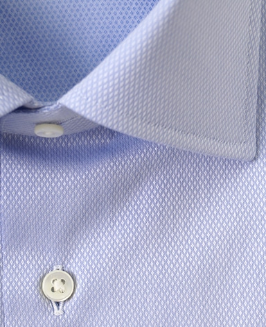 ■襟の表裏のパターンに差をつけ、コンパクトかつ構築的な襟を実現。品の良いドレスシャツの証である、首に巻きつくような内巻きフォルムは、匠によるいせ込み技術の成果です。