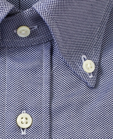 通常針目は3cmに18針以上で高級とされていますが、私たちのシャツは21針で縫い上げられています。また、耐久性に優れた「巻き伏せ本縫い」でシャツを仕立てています。