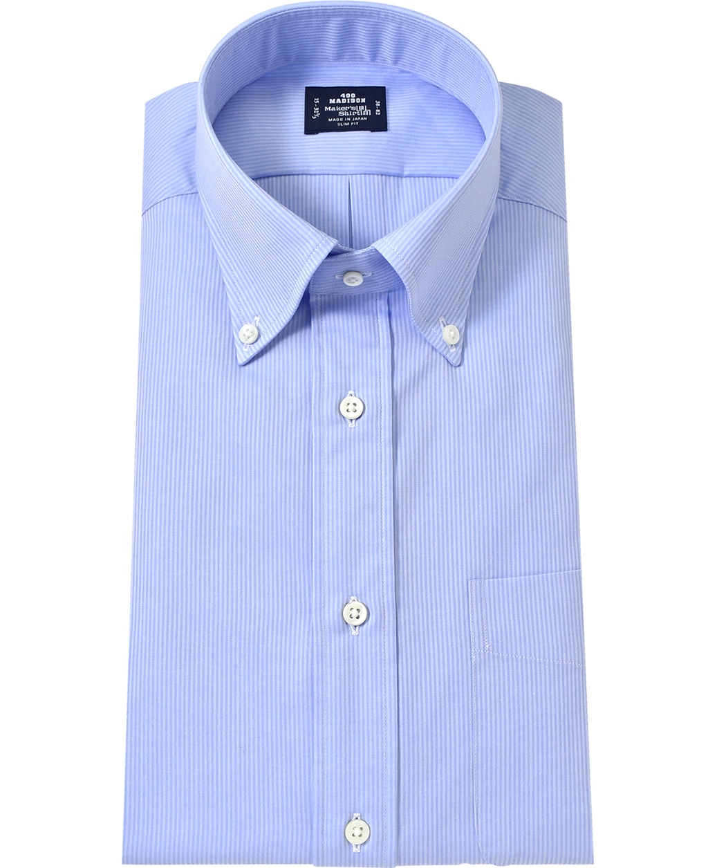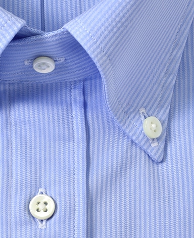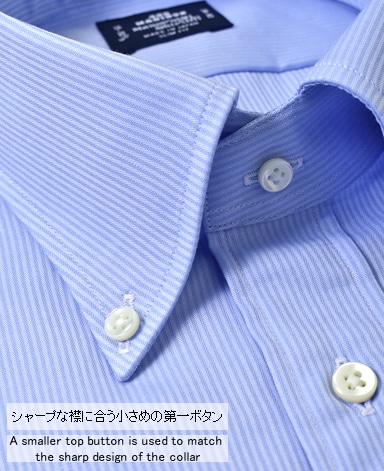 通常針目は3cmに18針以上で高級とされていますが、私たちのシャツは21針で縫い上げられています。また、耐久性に優れた「巻き伏せ本縫い」でシャツを仕立てています。