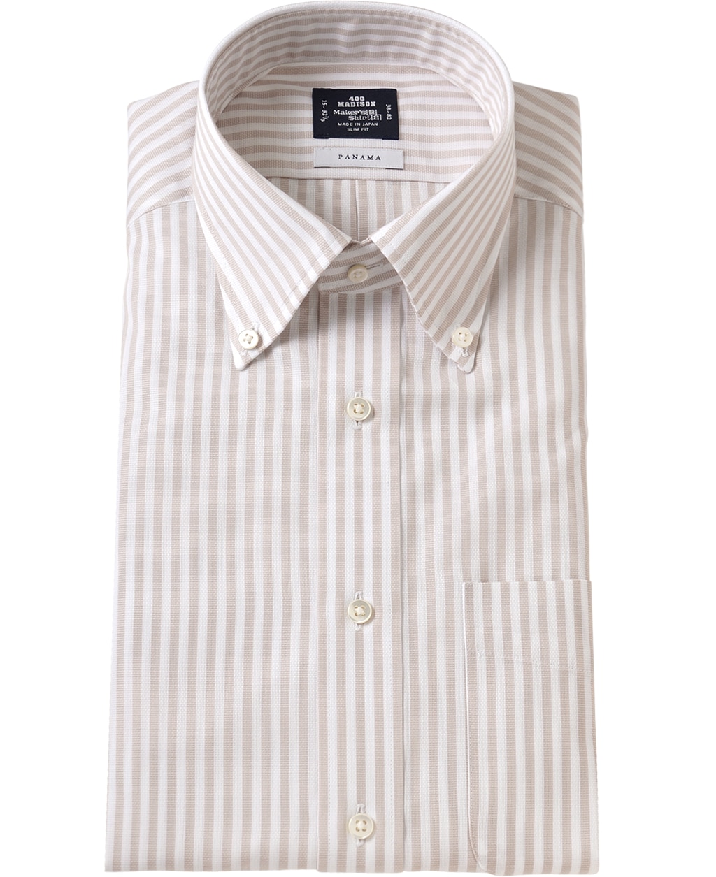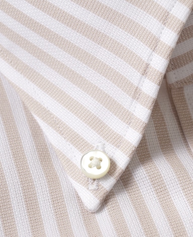通常針目は3cmに18針以上で高級とされていますが、私たちのシャツは21針で縫い上げられています。また、耐久性に優れた「巻き伏せ本縫い」でシャツを仕立てています。