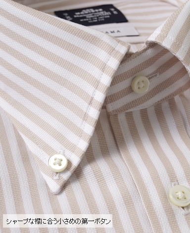 ■第一ボタンには、シャープな襟に合う小さめの9mmボタンを使用。