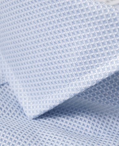 ■襟の表裏のパターンに差をつけ、コンパクトかつ構築的な襟を実現。品の良いドレスシャツの証である、首に巻きつくような内巻きフォルムは、匠によるいせ込み技術の成果です。
