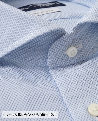 ■第一ボタンには、シャープな襟に合う小さめの9mmボタンを使用。