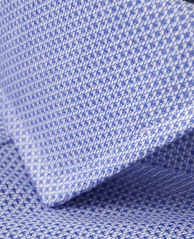 ■襟の表裏のパターンに差をつけ、コンパクトかつ構築的な襟を実現。品の良いドレスシャツの証である、首に巻きつくような内巻きフォルムは、匠によるいせ込み技術の成果です。
