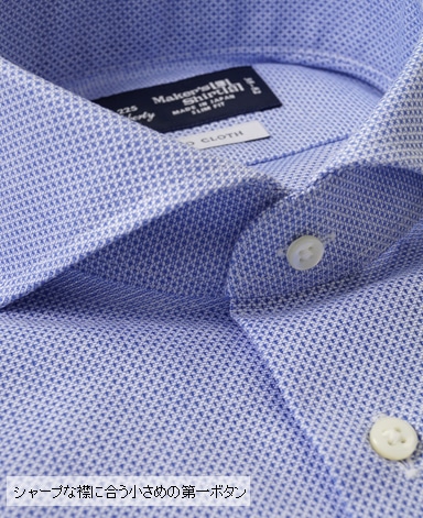 ■第一ボタンには、シャープな襟に合う小さめの9mmボタンを使用。