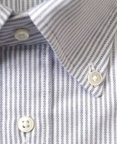 通常針目は3cmに18針以上で高級とされていますが、私たちのシャツは21針で縫い上げられています。また、耐久性に優れた「巻き伏せ本縫い」でシャツを仕立てています。