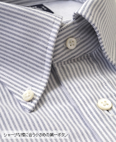 ■第一ボタンには、シャープな襟に合う小さめの9mmボタンを使用。