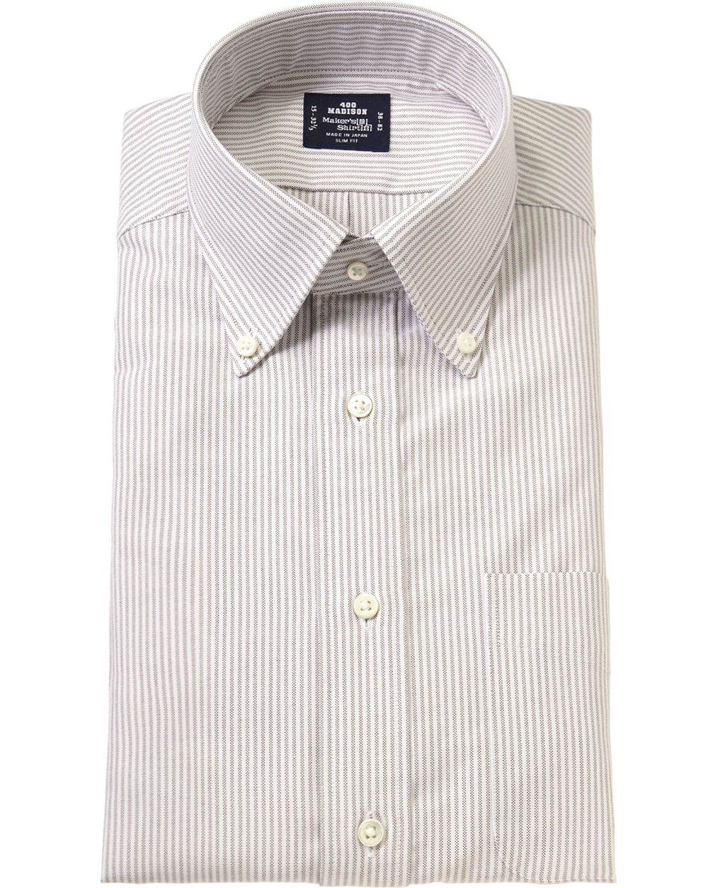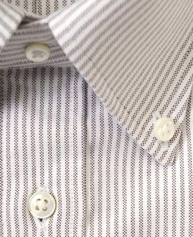 通常針目は3cmに18針以上で高級とされていますが、私たちのシャツは21針で縫い上げられています。また、耐久性に優れた「巻き伏せ本縫い」でシャツを仕立てています。