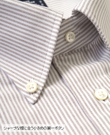 ■第一ボタンには、シャープな襟に合う小さめの9mmボタンを使用。
