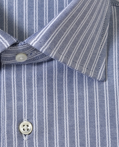 通常針目は3cmに18針以上で高級とされていますが、私たちのシャツは21針で縫い上げられています。また、耐久性に優れた「巻き伏せ本縫い」でシャツを仕立てています。