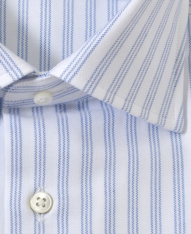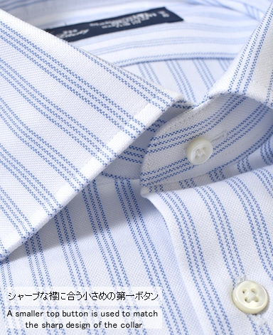 ■襟の表裏のパターンに差をつけ、コンパクトかつ構築的な襟を実現。品の良いドレスシャツの証である、首に巻きつくような内巻きフォルムは、匠によるいせ込み技術の成果です。