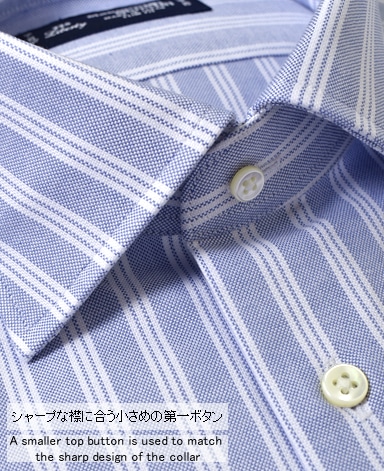 通常針目は3cmに18針以上で高級とされていますが、私たちのシャツは21針で縫い上げられています。また、耐久性に優れた「巻き伏せ本縫い」でシャツを仕立てています。