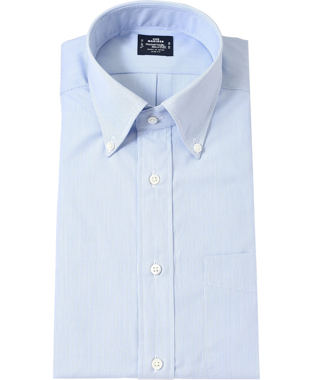 通常針目は3cmに18針以上で高級とされていますが、私たちのシャツは21針で縫い上げられています。また、耐久性に優れた「巻き伏せ本縫い」でシャツを仕立てています。