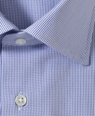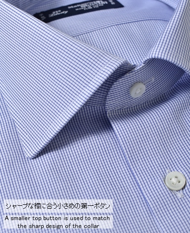 ■襟の表裏のパターンに差をつけ、コンパクトかつ構築的な襟を実現。品の良いドレスシャツの証である、首に巻きつくような内巻きフォルムは、匠によるいせ込み技術の成果です。