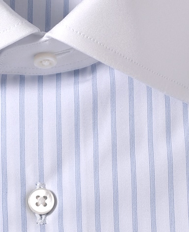 通常針目は3cmに18針以上で高級とされていますが、私たちのシャツは21針で縫い上げられています。また、耐久性に優れた「巻き伏せ本縫い」でシャツを仕立てています。