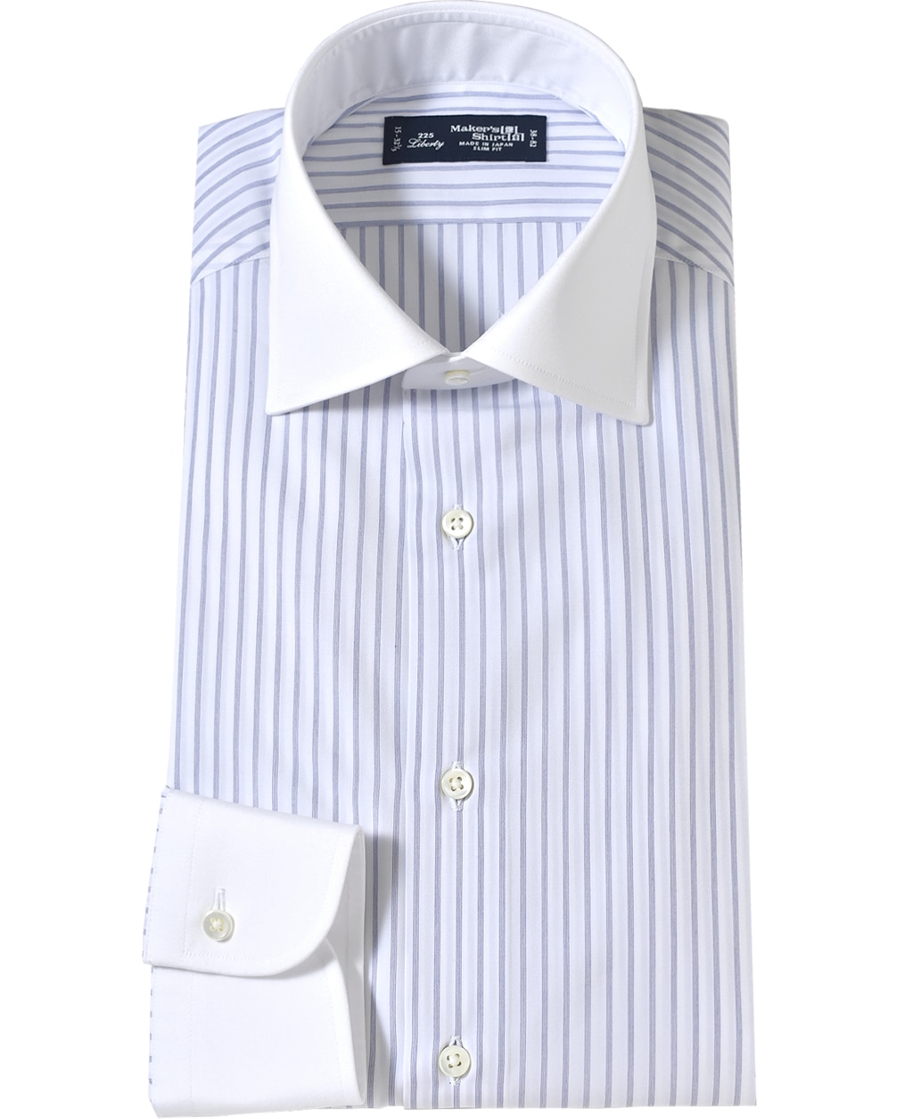 通常針目は3cmに18針以上で高級とされていますが、私たちのシャツは21針で縫い上げられています。また、耐久性に優れた「巻き伏せ本縫い」でシャツを仕立てています。