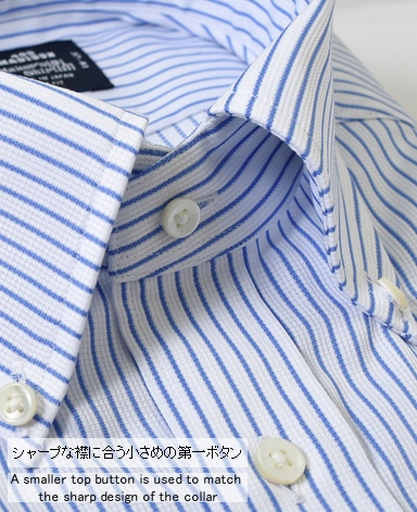 通常針目は3cmに18針以上で高級とされていますが、私たちのシャツは21針で縫い上げられています。また、耐久性に優れた「巻き伏せ本縫い」でシャツを仕立てています。