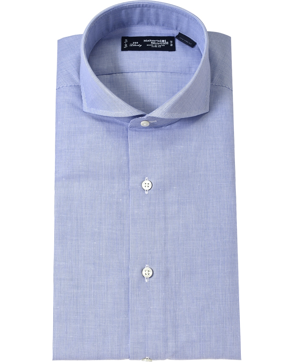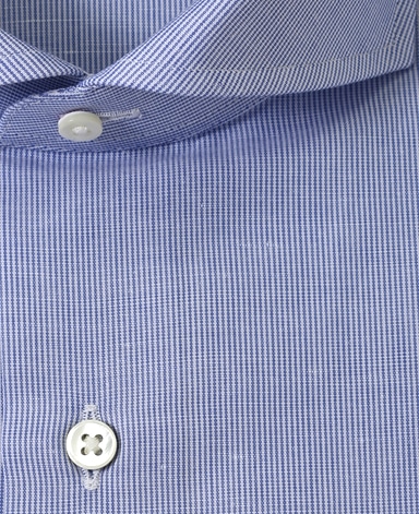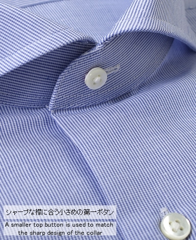 ■襟の表裏のパターンに差をつけ、コンパクトかつ構築的な襟を実現。品の良いドレスシャツの証である、首に巻きつくような内巻きフォルムは、匠によるいせ込み技術の成果です。