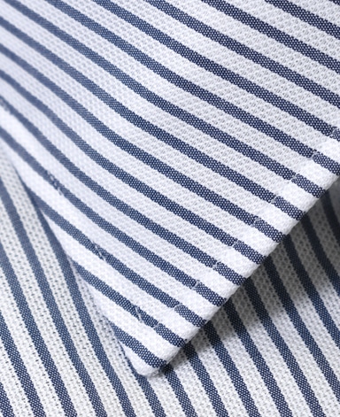 通常針目は3cmに18針以上で高級とされていますが、私たちのシャツは21針で縫い上げられています。また、耐久性に優れた「巻き伏せ本縫い」でシャツを仕立てています。