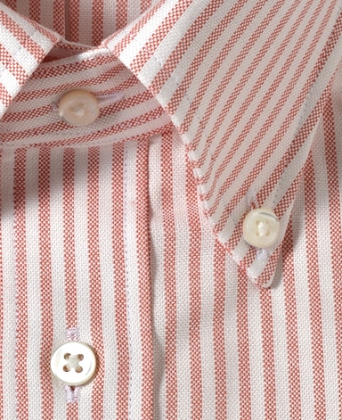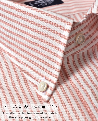 通常針目は3cmに18針以上で高級とされていますが、私たちのシャツは21針で縫い上げられています。