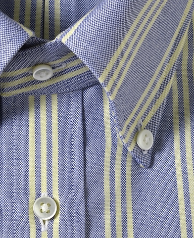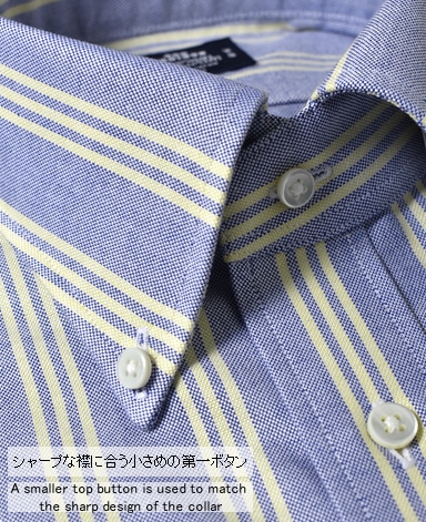 通常針目は3cmに18針以上で高級とされていますが、私たちのシャツは21針で縫い上げられています。また、耐久性に優れた「巻き伏せ本縫い」でシャツを仕立てています。