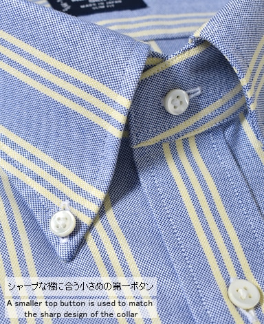 通常針目は3cmに18針以上で高級とされていますが、私たちのシャツは21針で縫い上げられています。また、耐久性に優れた「巻き伏せ本縫い」でシャツを仕立てています。