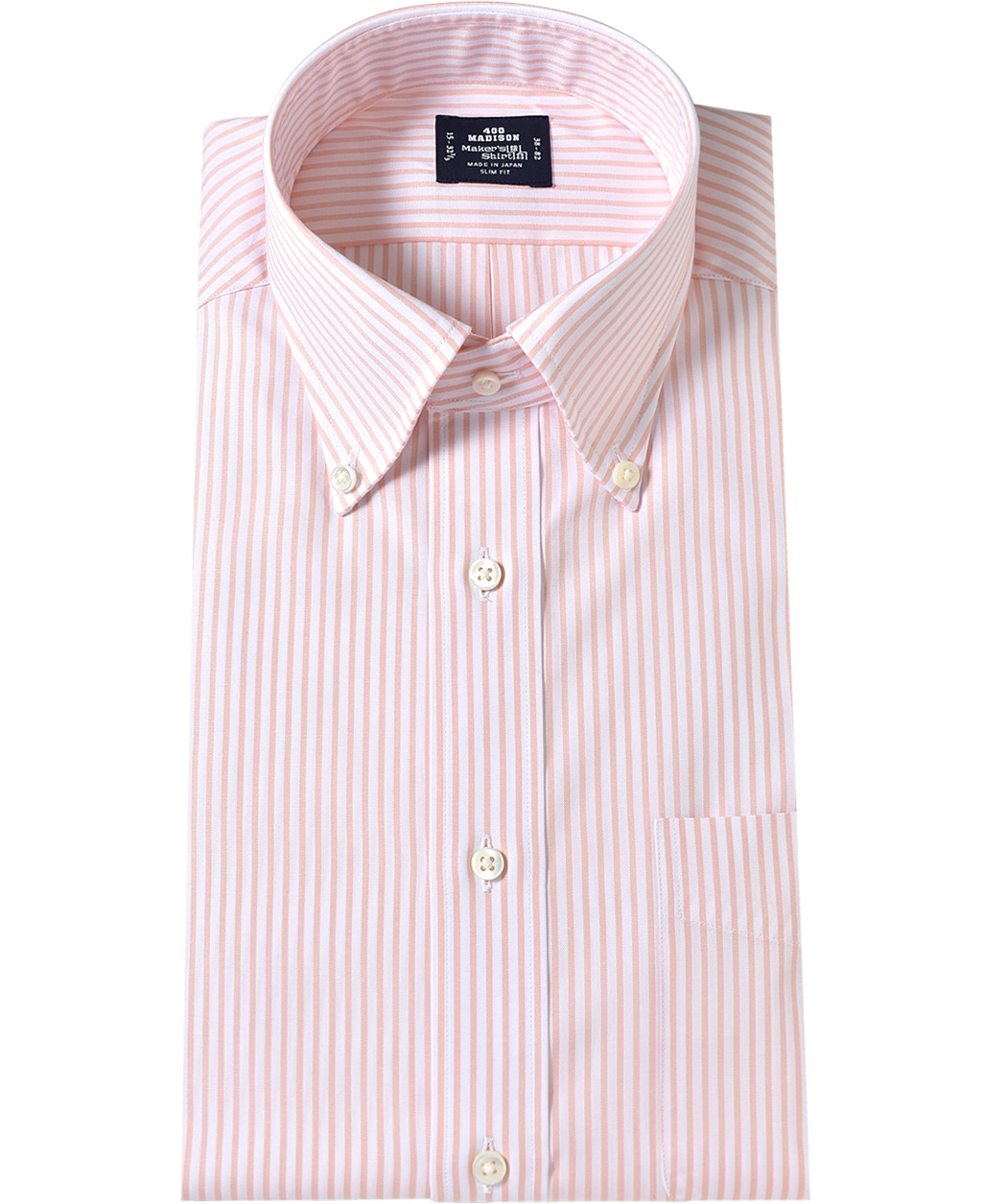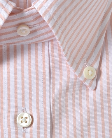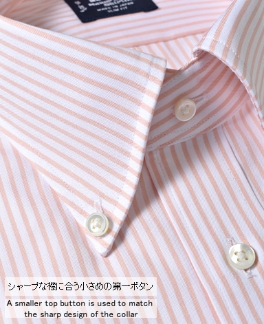 通常針目は3cmに18針以上で高級とされていますが、私たちのシャツは21針で縫い上げられています。また、耐久性に優れた「巻き伏せ本縫い」でシャツを仕立てています。