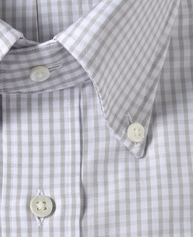 ■襟の表裏のパターンに差をつけ、コンパクトかつ構築的な襟を実現。品の良いドレスシャツの証である、首に巻きつくような内巻きフォルムは、匠によるいせ込み技術の成果です。