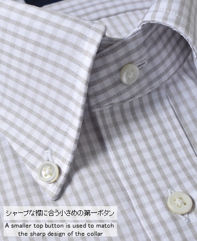 ■第一ボタンには、シャープな襟に合う小さめの9mmボタンを使用。