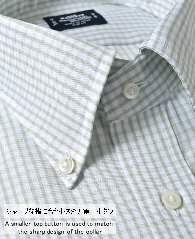 通常針目は3cmに18針以上で高級とされていますが、私たちのシャツは21針で縫い上げられています。また、耐久性に優れた「巻き伏せ本縫い」でシャツを仕立てています。